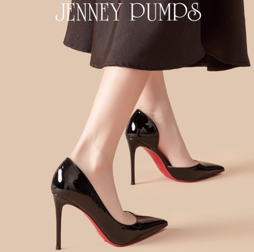 Women's black high heels stiletto pointed toe side slit patent leather commuter shoes